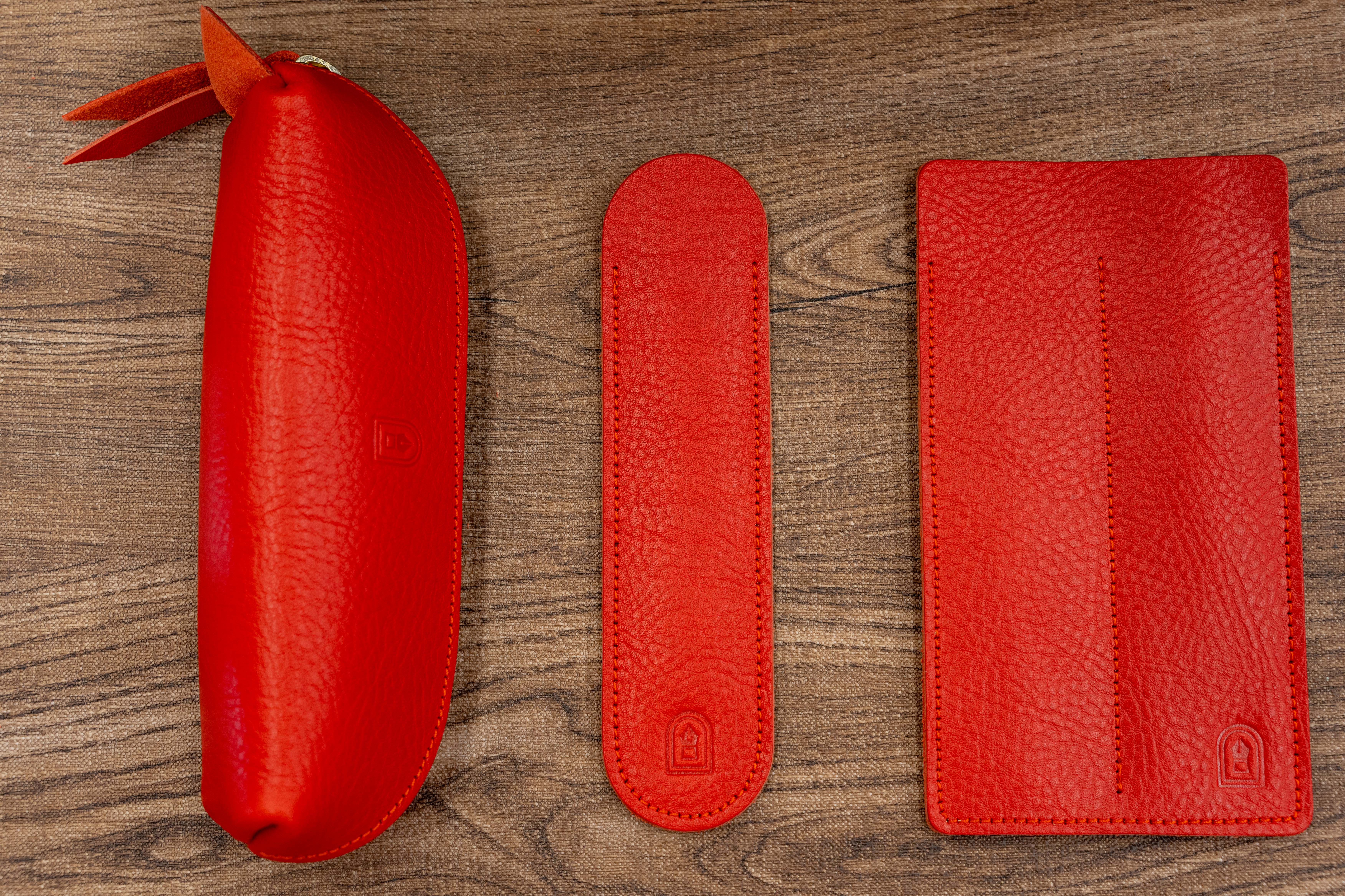※サイズ感を見て頂くために1本差し、2本差し、三角ペンケースを並べた写真を掲載しております。