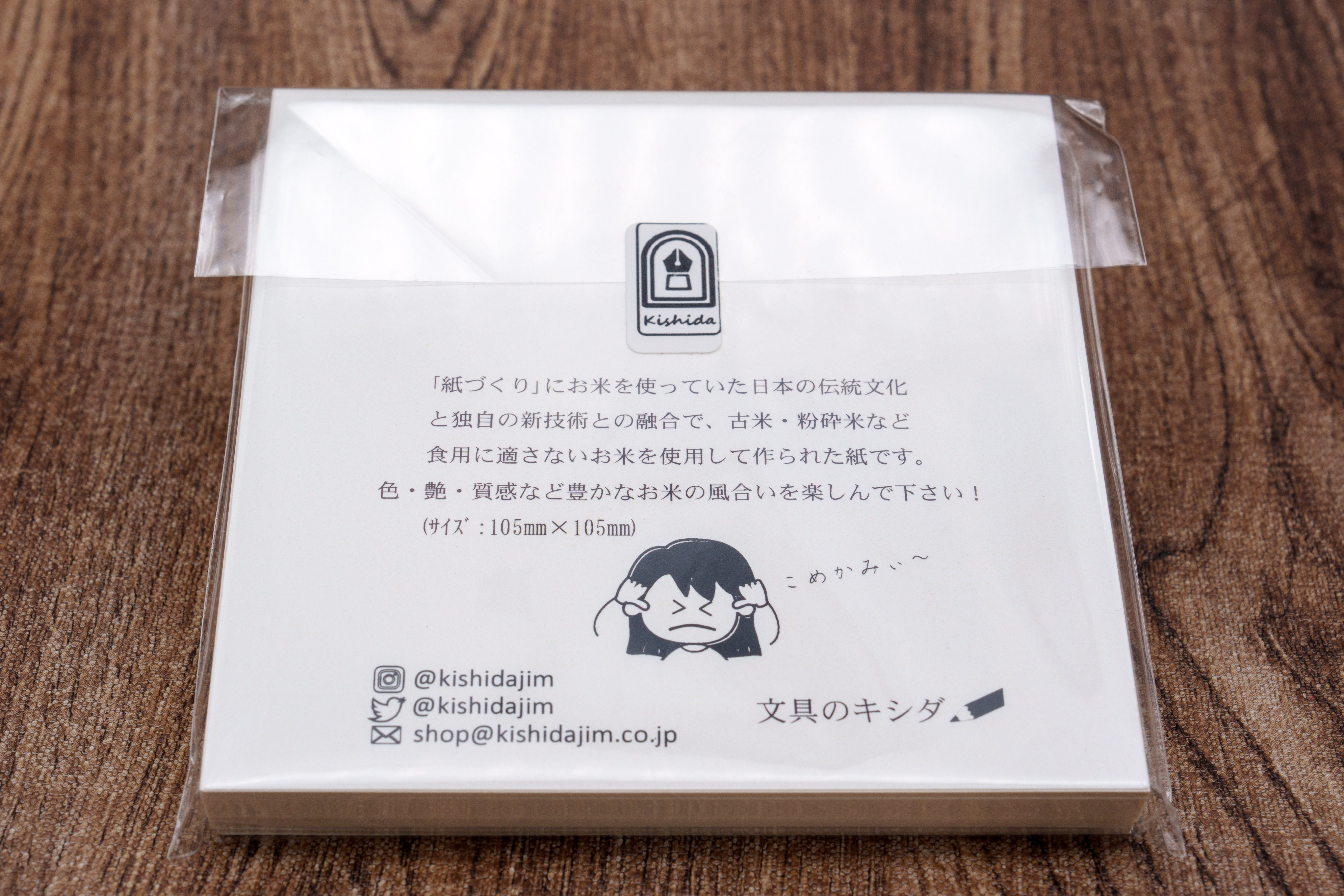kome-kami(食べられなくなったお米で作った紙素材)を使用した真四角の用紙です。(お米を使ってますが食べられませんw)