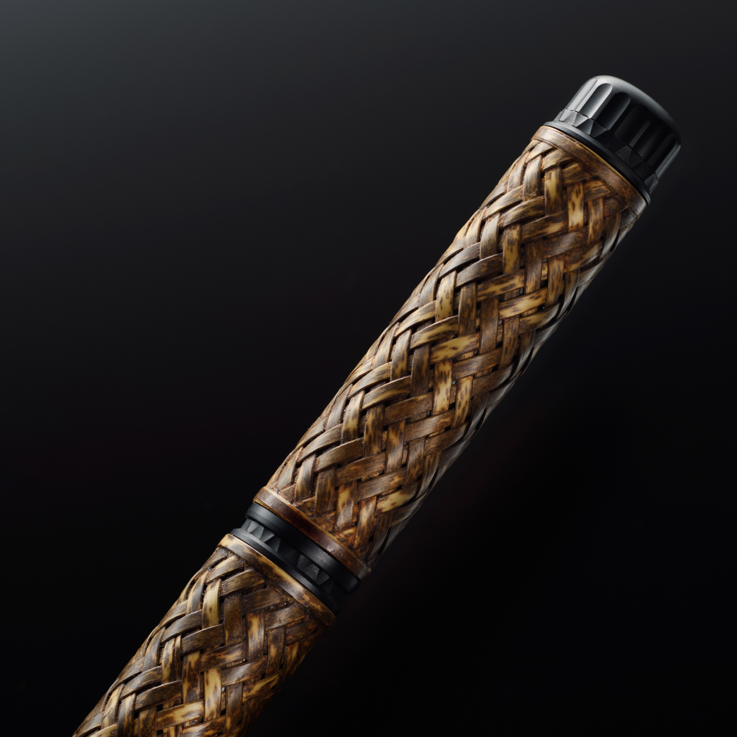 貴重な虎斑竹を使い伝統工芸士が軸に横網代(よこあじろ)編込みを施し漆で仕上げました。竹の織りなすパターンが美しくアンティークな佇まいを醸し出し、手に馴染む万年筆に仕立ています。