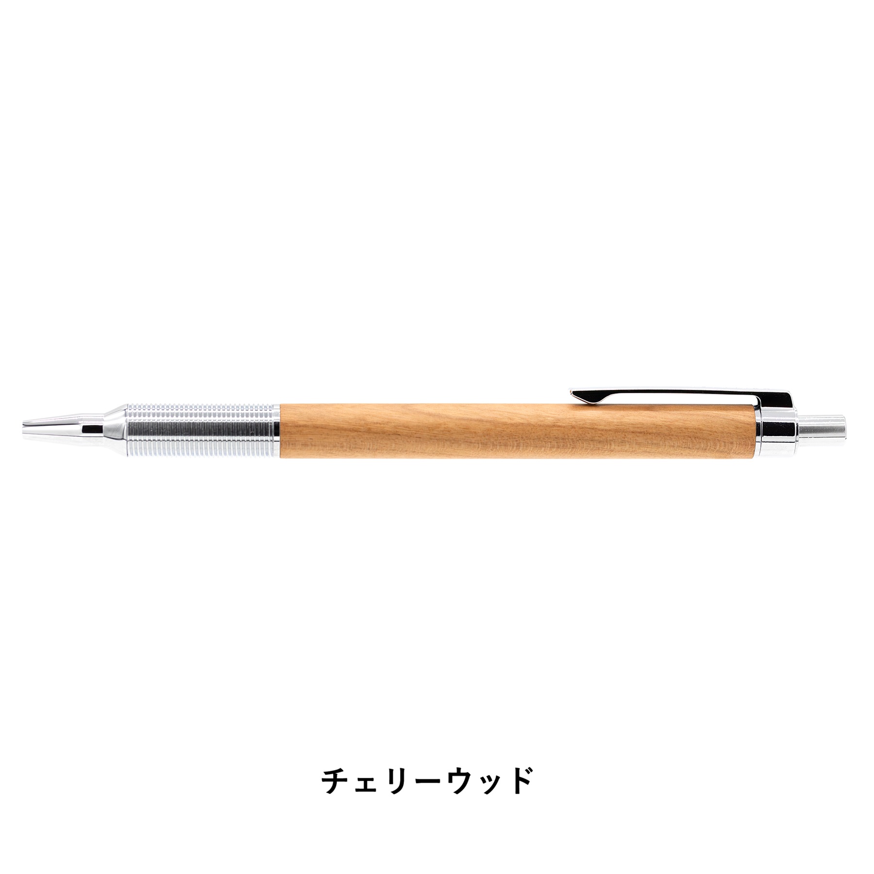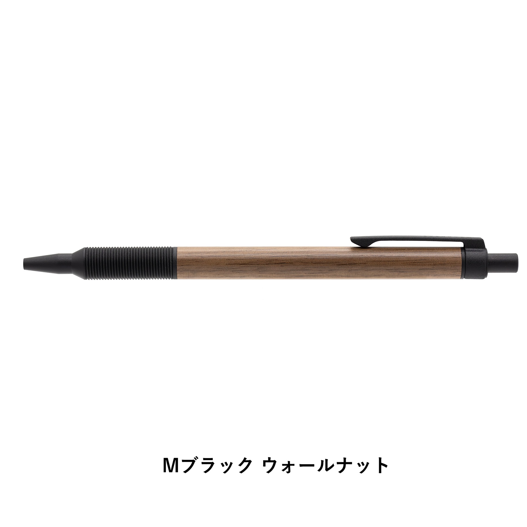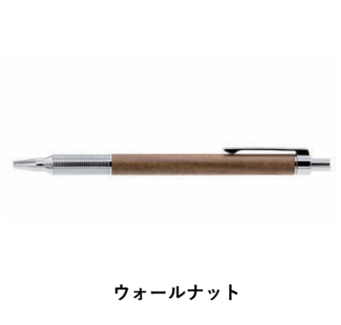 金属と天然木の対比が美しい低重心設計のノック式油性ボールペン。