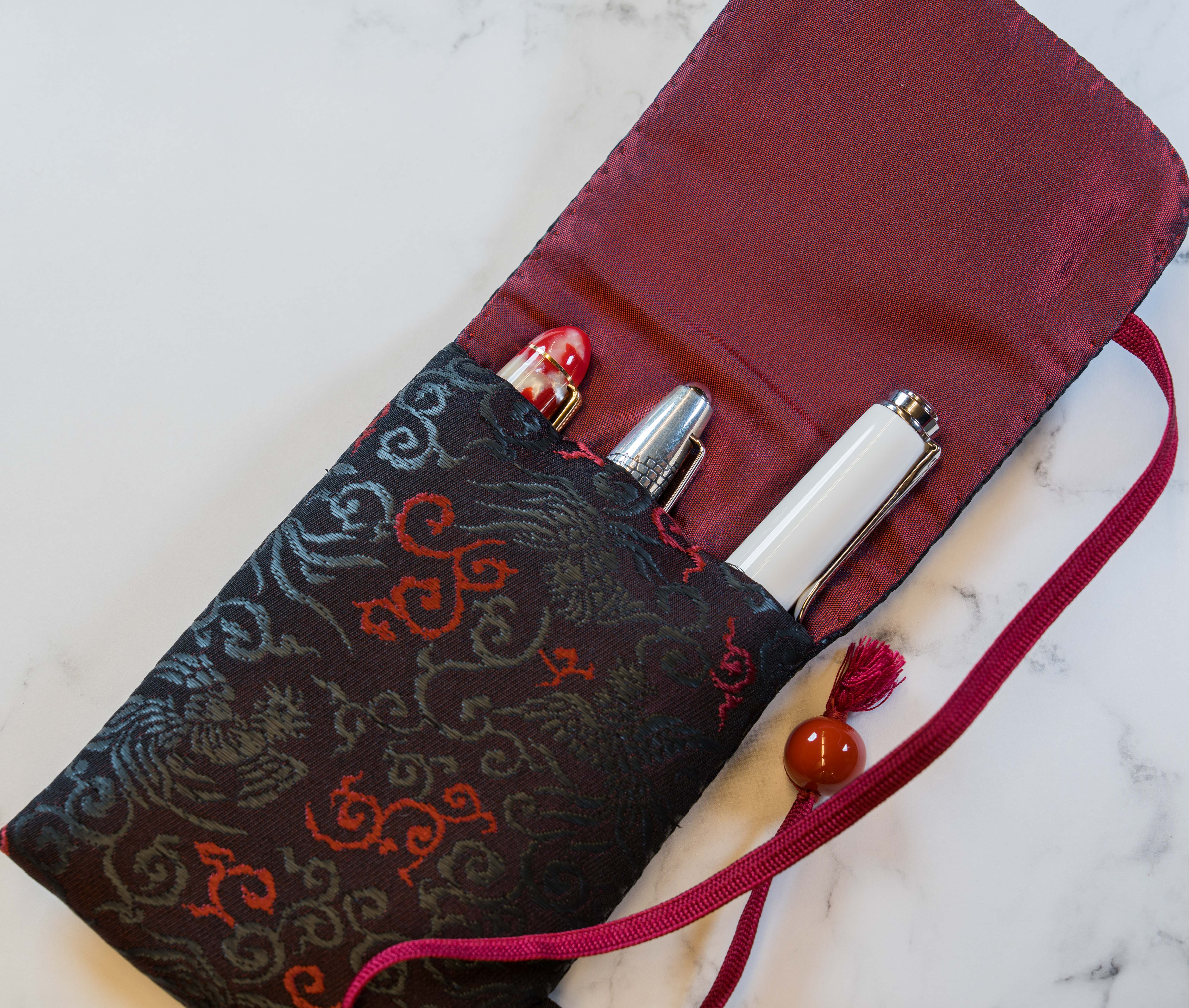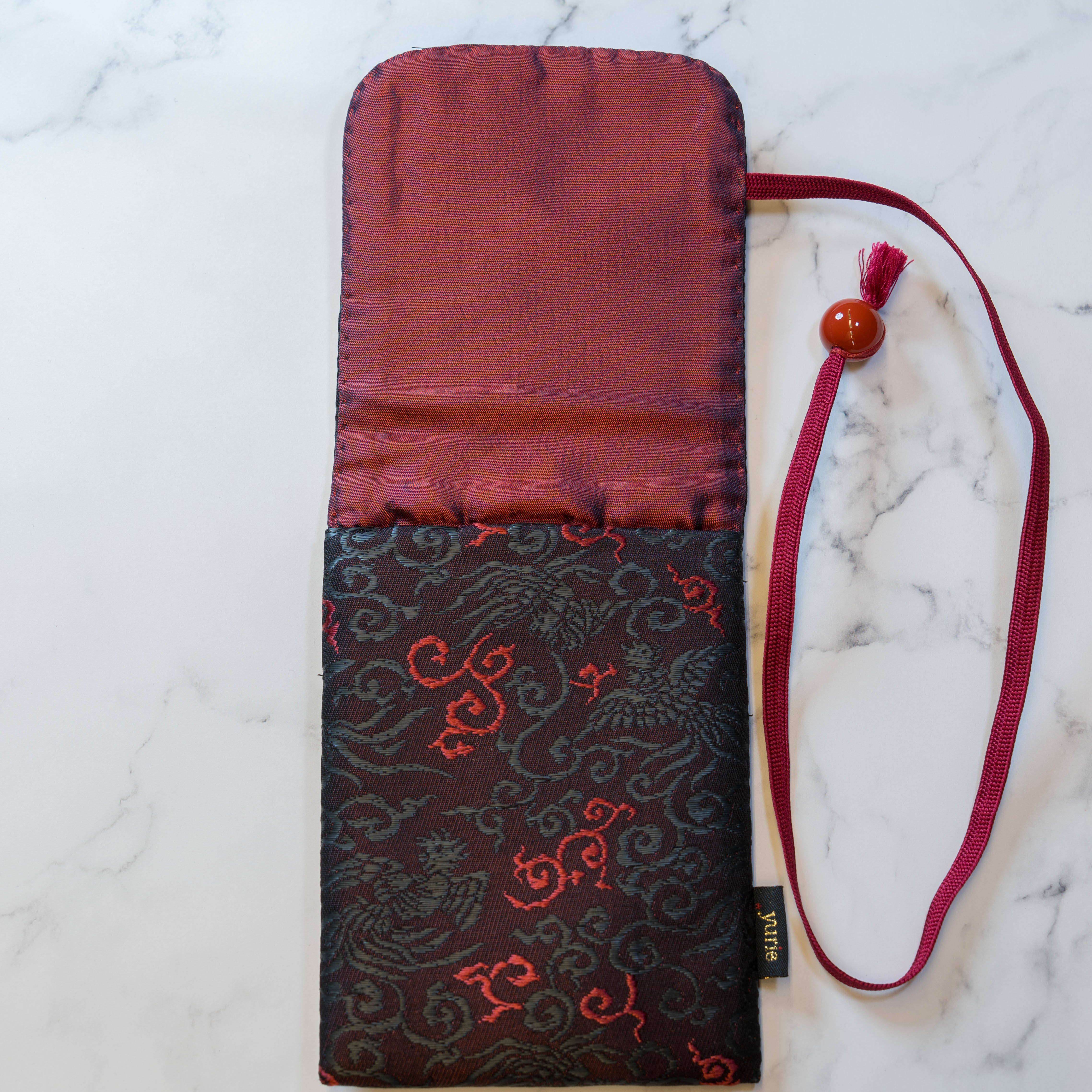 yurie 3本用正絹ペンケース 鳳凰唐草 赤 カバー付